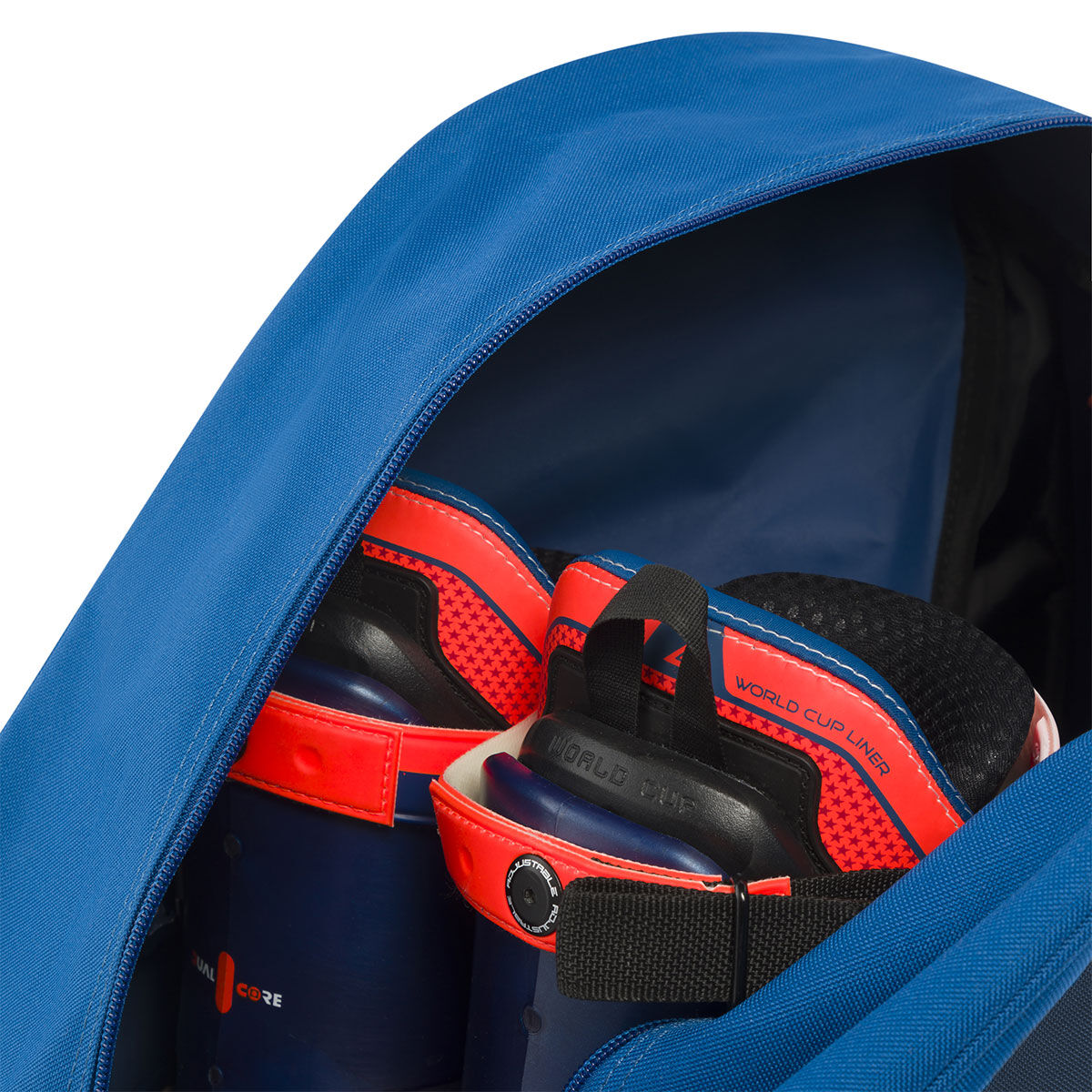 Durable bag for one pair of ski boots with a shoulder handle.
