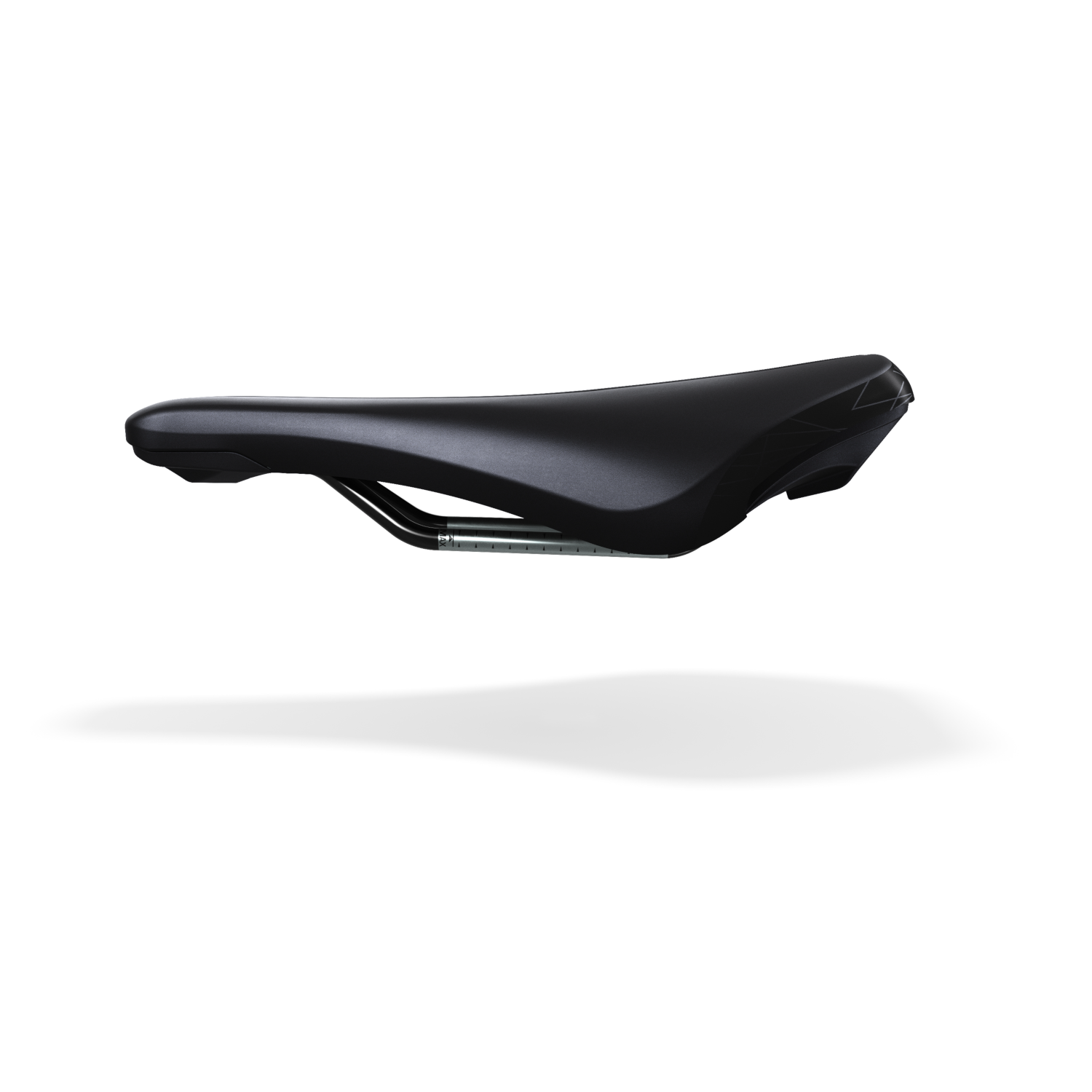 Vrhunska konstrukcija: Osnova, ojačana s karbonskimi mostički, zagotavlja izjemno togost in prenos moči, trpežna PU prevleka pa ščiti sedež pred poškodbami.