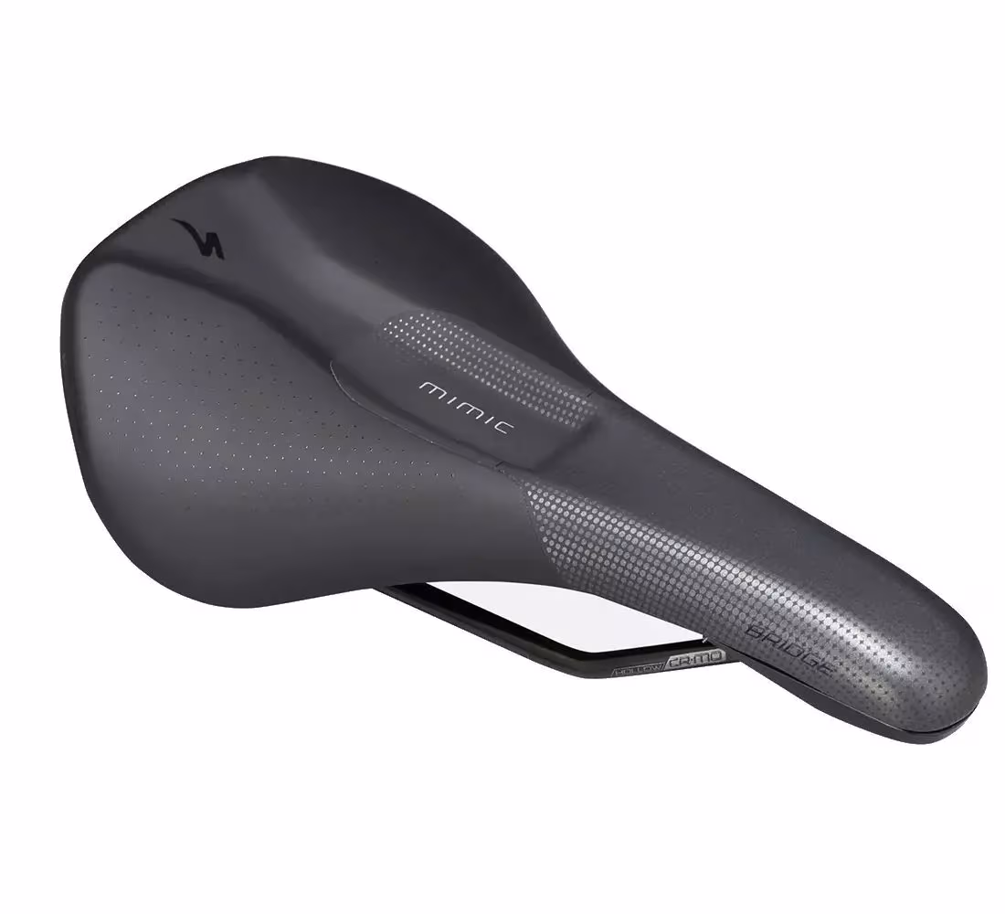 Specialized Bridge Comp Mimic sedež spada v kategorijo kolesarskih sedežev, ki nudi večjo mero udobja. Obdan s tehnologijo MIMIC tako omogoča, da se sedež izvrstno prilagodi telesu in nudi oporo tam, kjer jo najbolj potrebuje. Ko si v pravem položaju na kolesu, kilometri kar letijo mimo. Dobra pozicija na pravilno oblikovanem sedežu zagotavlja sedenje na kosteh in ne na arterijah, živcih in mehkem tkivu. Mimic zmanjša pritisk in omogoča strukturno in anatomsko podporo za mehka tkiva. Na prednjem delu mehka pena izniči pritisk, na zadnjem delu pa trša pena nudi podporo sedalni kosti. V sredinskem izseku mehka spominska pena prinaša anatomsko podporo za preprečitev otekanja mehkega tkiva.