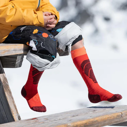 Anatomske smučarske nogavice Ski Merino Junior so posebej zasnovane za udobje malih smučarskih prvakov. Blazinice na goleni, peti in prstih ščitijo te občutljive dele stopala. Merino volna zagotavlja toploto in učinkovito odvajanje vlage, kar omogoča optimalno zračnost stopal skozi ves dan – tudi za mlade smučarje, ki so posebej občutljivi na mraz.