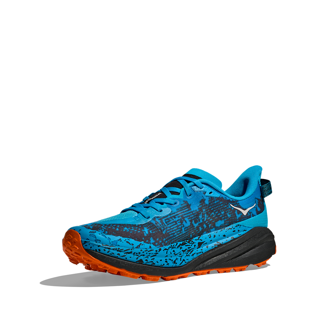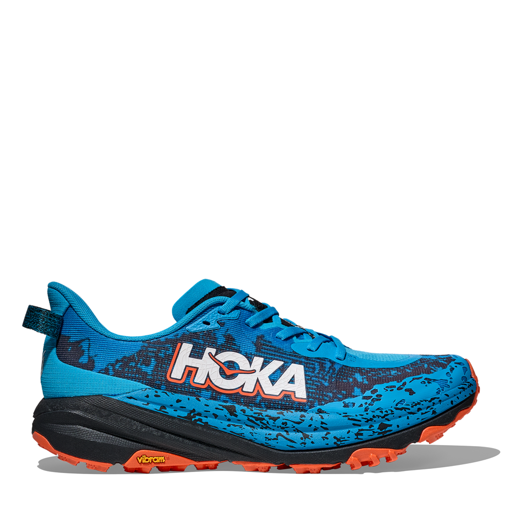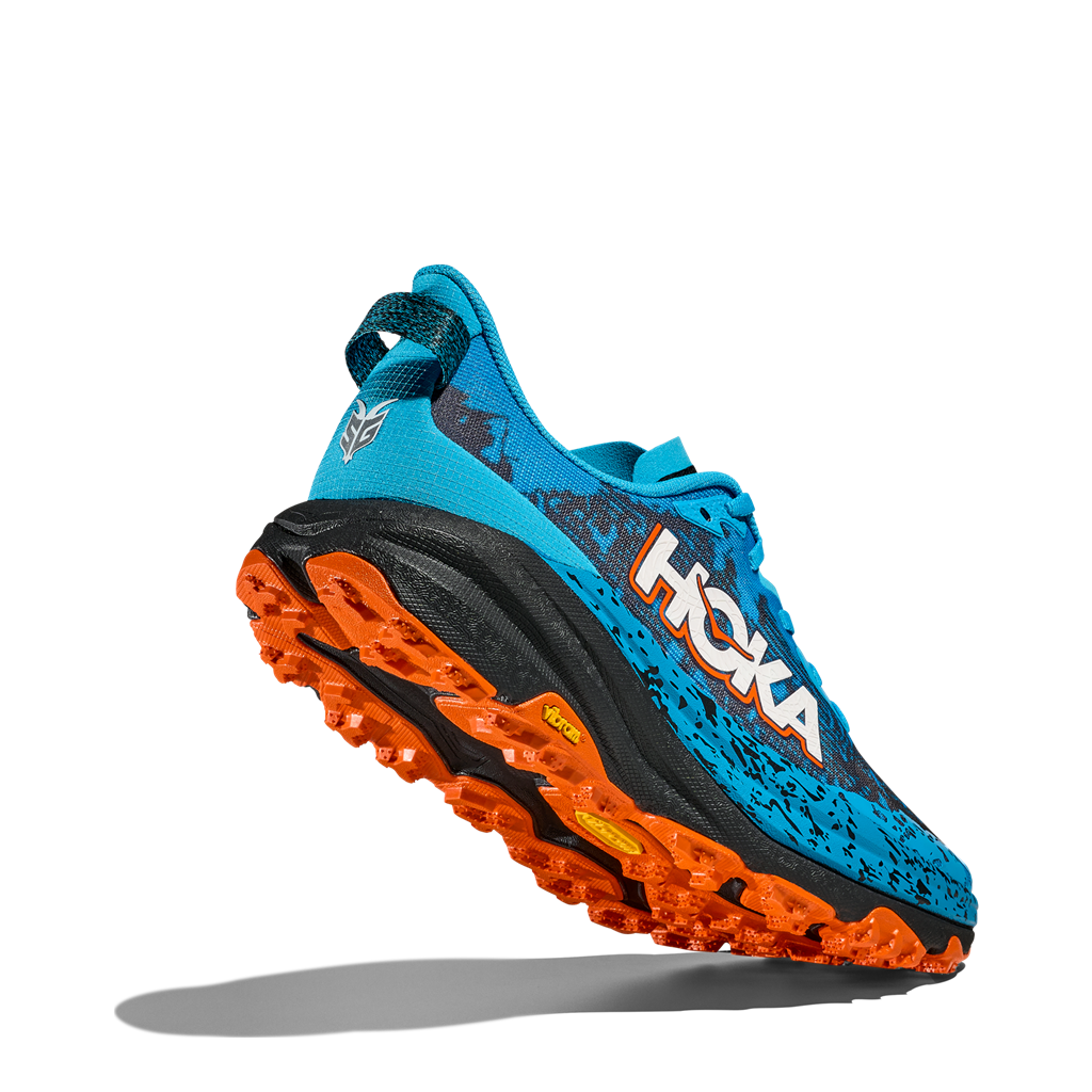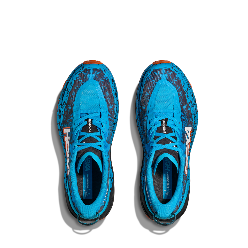 Super oprijem in odlična odzivnost za raznorazne tehnične terene, kjer obstaja eden in edini GOAT – gledate ga. Kombinacija Hokinega preizkušenega in priljubljenega blaženja ter agresivnega oprijema in ultralahkih materialov – novi Speedgoat 6 je bil zasnovan, da si podredi stezice v naravi. Najnovejšo različico stroja za tehnične terene smo še dodatno izboljšali z zračnim in lahkim tekstilom na zgornjem delu copata, notranjo konstrukcijo, ki lepo objame stopalo, ter mehkim, dvojno vpetim jezikom. Seveda nismo pozabili na oprijem na terenu, saj smo posodobili tudi usmerjenost gumijastih čepov.