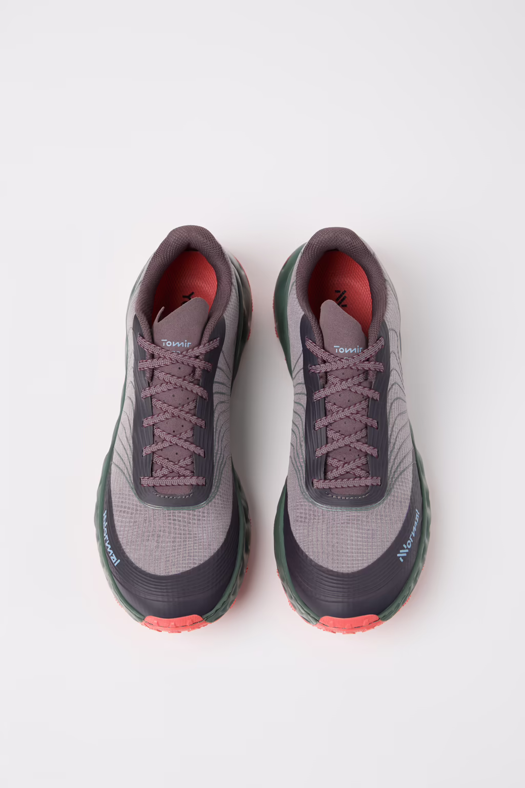 Podporen in drzen Tomir 02 v vijolični barvi združuje zanesljivo blaženje s samozavestnim slogom. Zasnovan je za dolge in tehnično zahtevne trail teke, kjer sta stabilnost in zaščita ključnega pomena. Čevelj, narejen za dolge razdalje – tako na tehničnem terenu kot tudi v izraziti barvi.